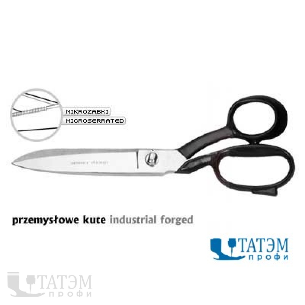 Портновские промышленные кованые ножницы, никелированные [обозначение NP - Nickel Plated]. Длина 25,5 см. Специальная заточка нижнего лезвия [обозначение SR - микрозаточка] удерживает без скольжения даже наиболее деликатные ткани, облегчает резку как тонких, так и толстых материалов.