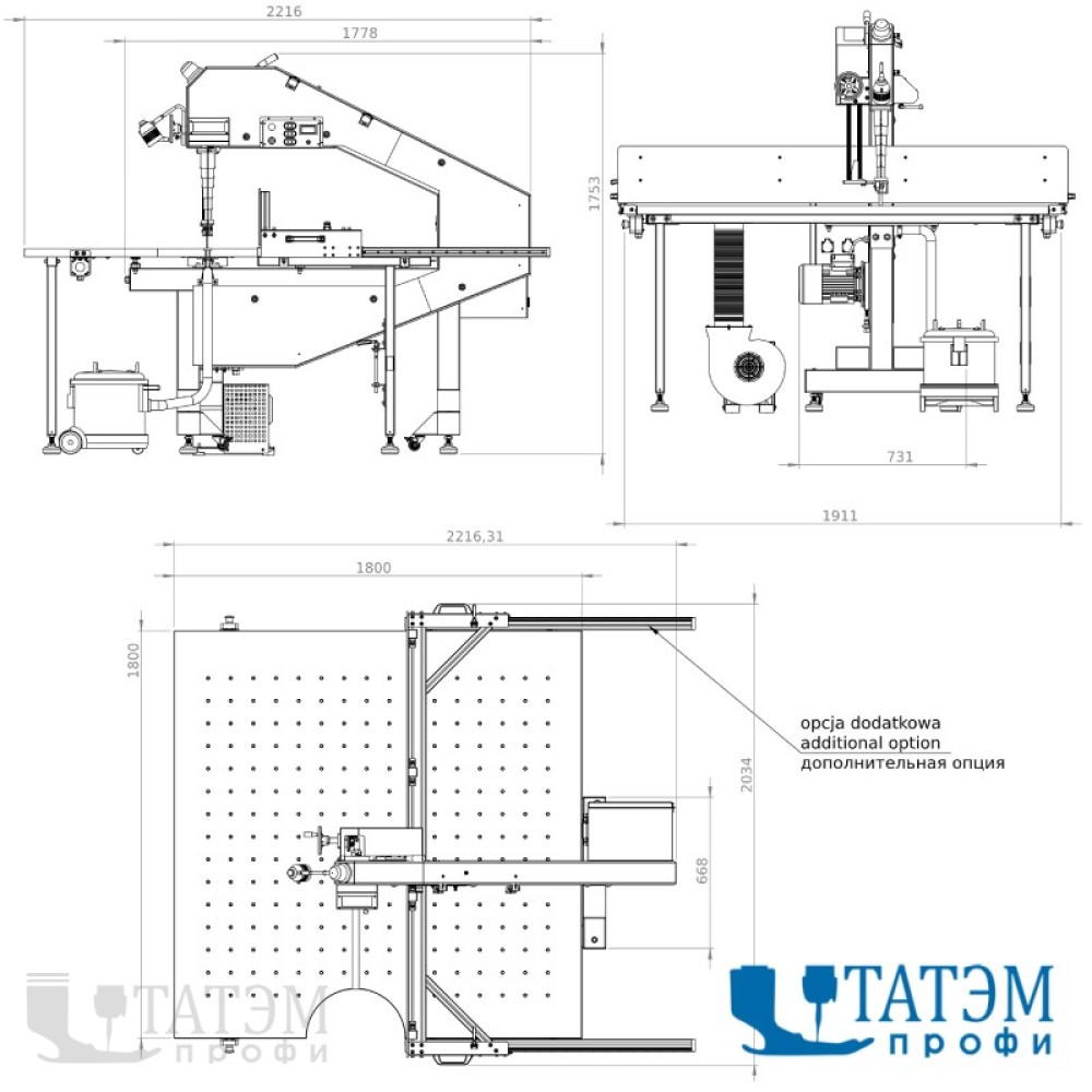 - (Опция) пылесосная система для удаления пыли и частиц материала во время процесса резки.