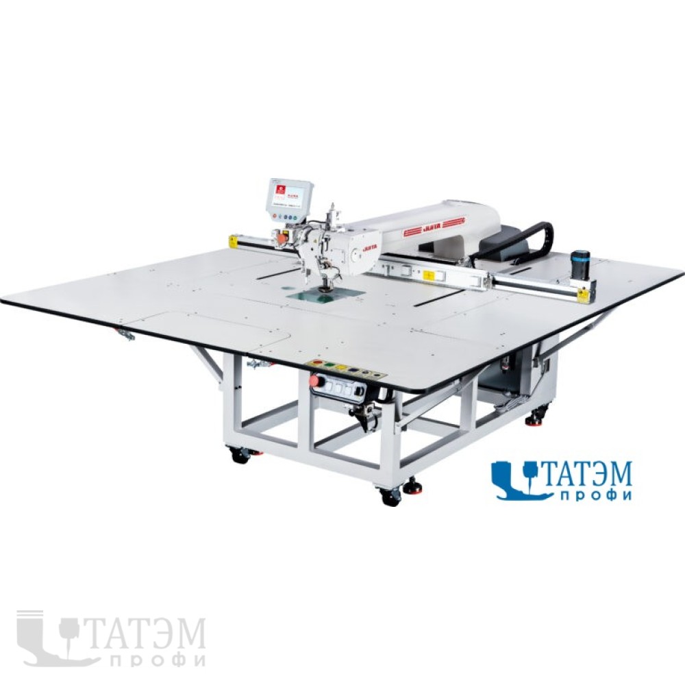 Автоматическая шаблонная швейная машина (швейный автомат, стегальная машина) JUITA JTK18F-1000A с полем шитья 1300х1000 см. Независимый сервопривод главного и челночного валов позволяет снизить уровень вибрации и шума при работе машины.