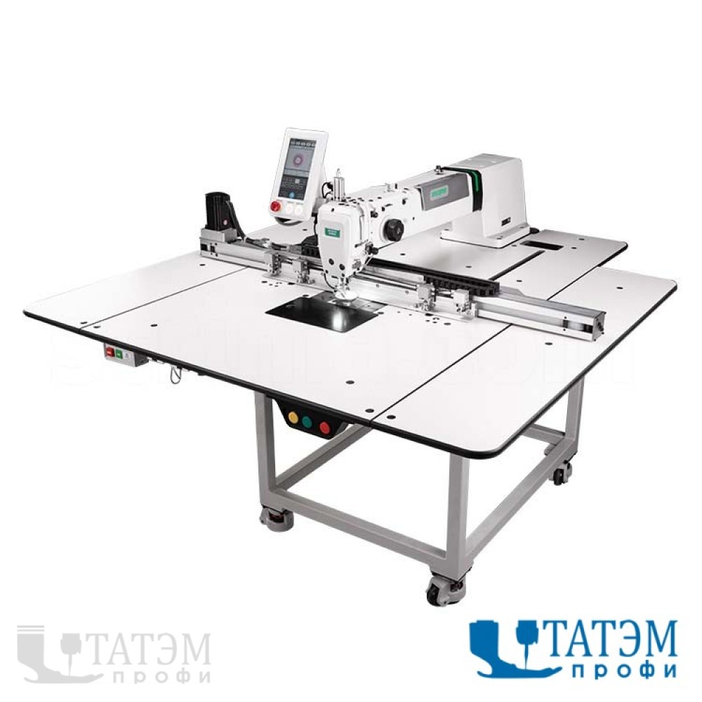 Промышленная автоматизированная швейная машина одноигольного челночного стежка для шитья по шаблонам и стежки мелких деталей с рабочим полем 1000 х 500 мм. Предназначена для лёгких, средних и тяжелых материалов. С автоматическими функциями стежки по шаблонам, фиксированного стежка, автоматической закрепки в начале и в конце строчки, автоматического программируемого шитья по заданному контуру.