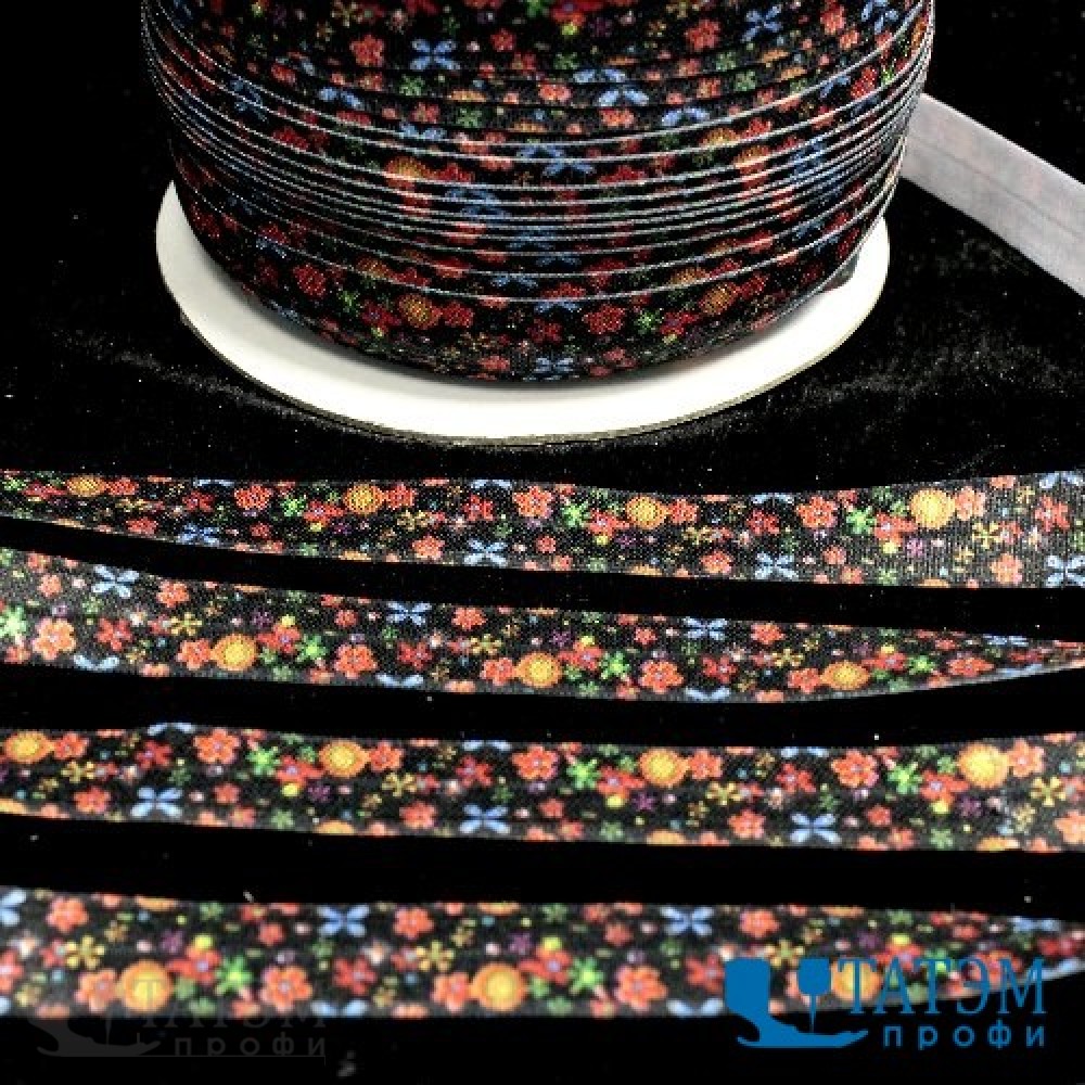 Бейка эластичная декоративная 15 мм, цветы-бабочки, уп. 100 м