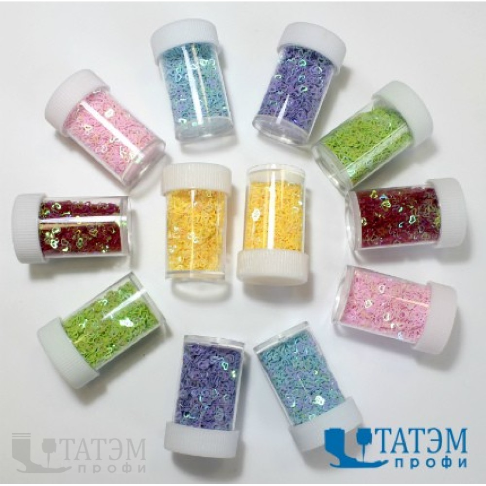 Блестки в тубах по 10 г, "Сердечки" перламутровое ассорти, уп. 12 шт