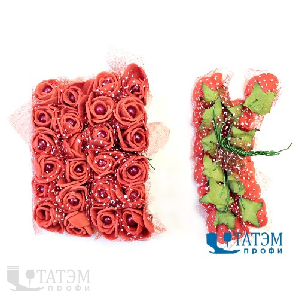 Букетик "Розочка с жемчугом" арт. 02-649, айвори, уп. 144 шт