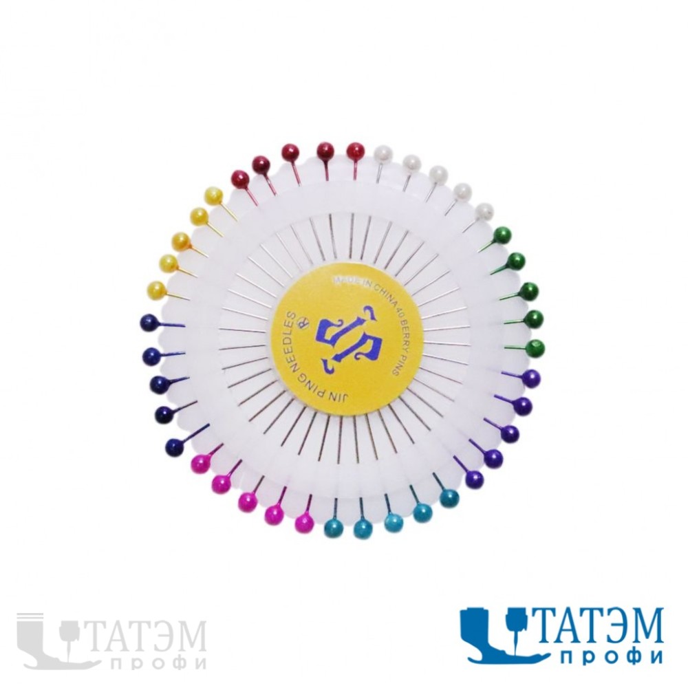 Булавки на пластине 40 мм, диам. 0,6 мм (40 шт) "капелька" цветные