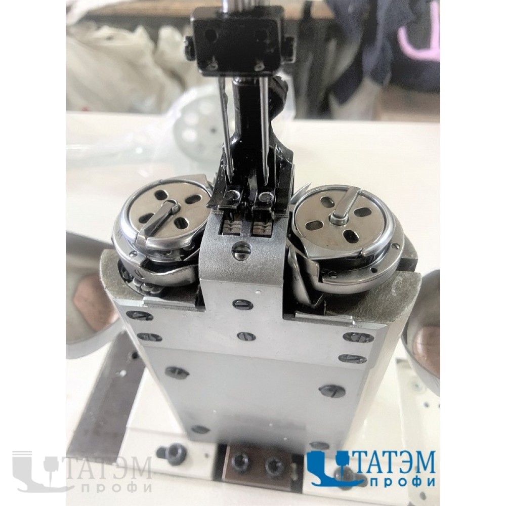 Двухигольная, колонковая машина челночного стежка с верхним, нижним и игольным (унисонным), продвижением материала, с увеличенным вертикальным челноком, расстояние между иглами 12,7 мм, без отключения игл. Предназначена для шитья тяжелых материалов, таких как: спортивная обувь, женская обувь, различных изделий из натуральной и искусственной кожи, мягкой мебели, отделки автомобильных салонов и т. д.