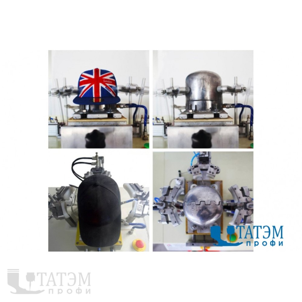 Автоматический пресс для окончательной (финишной) формовки бейсболки и кепки. Разглаживает складки при помощи специальной нагреваемой пресс-формы, через отверстия которой подается пар. Пресс-формы заказываются согласно технологическому заданию покупателя, с обязательным предоставлением образцов. Две рабочие пресс-формы значительно увеличивают производительность.