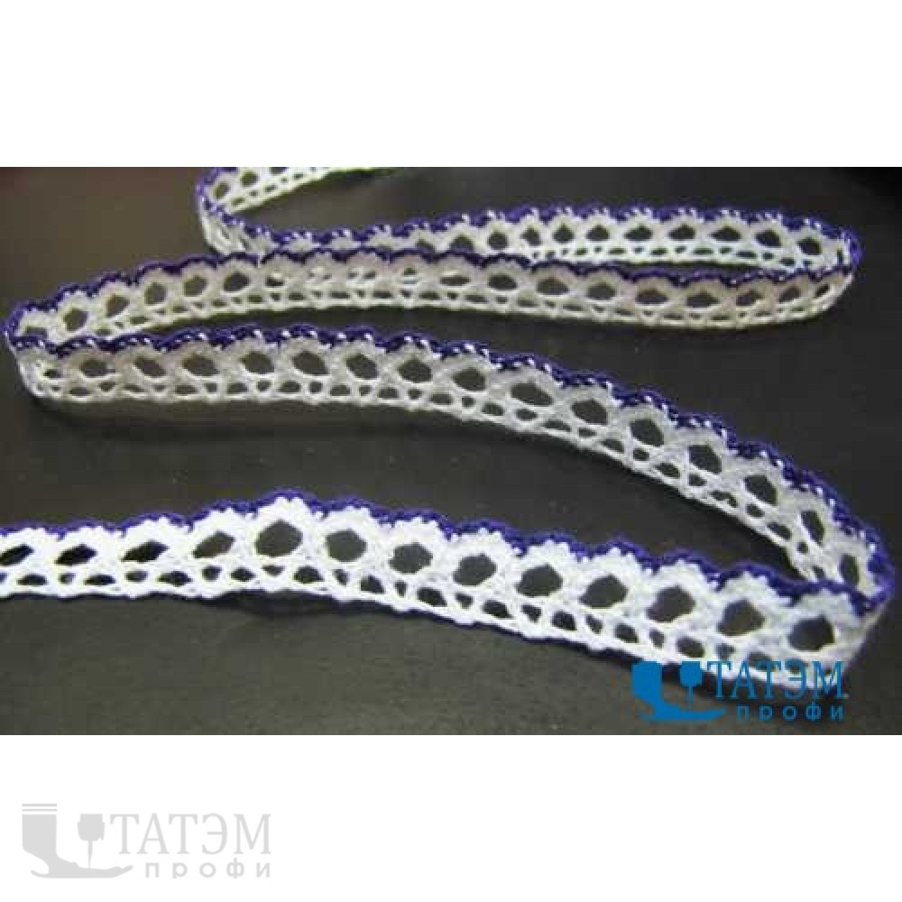 Кружево "на коклюшках" 11 мм, арт.YH1189, бело-фиолетовый, уп. 15 ярд