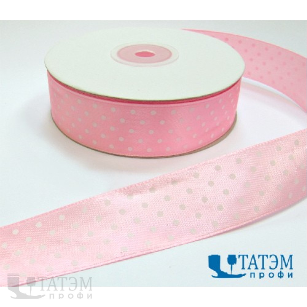 Лента декор. капроновая с рис."горох" 25 мм, бледно-сиреневый, уп. 50 ярд