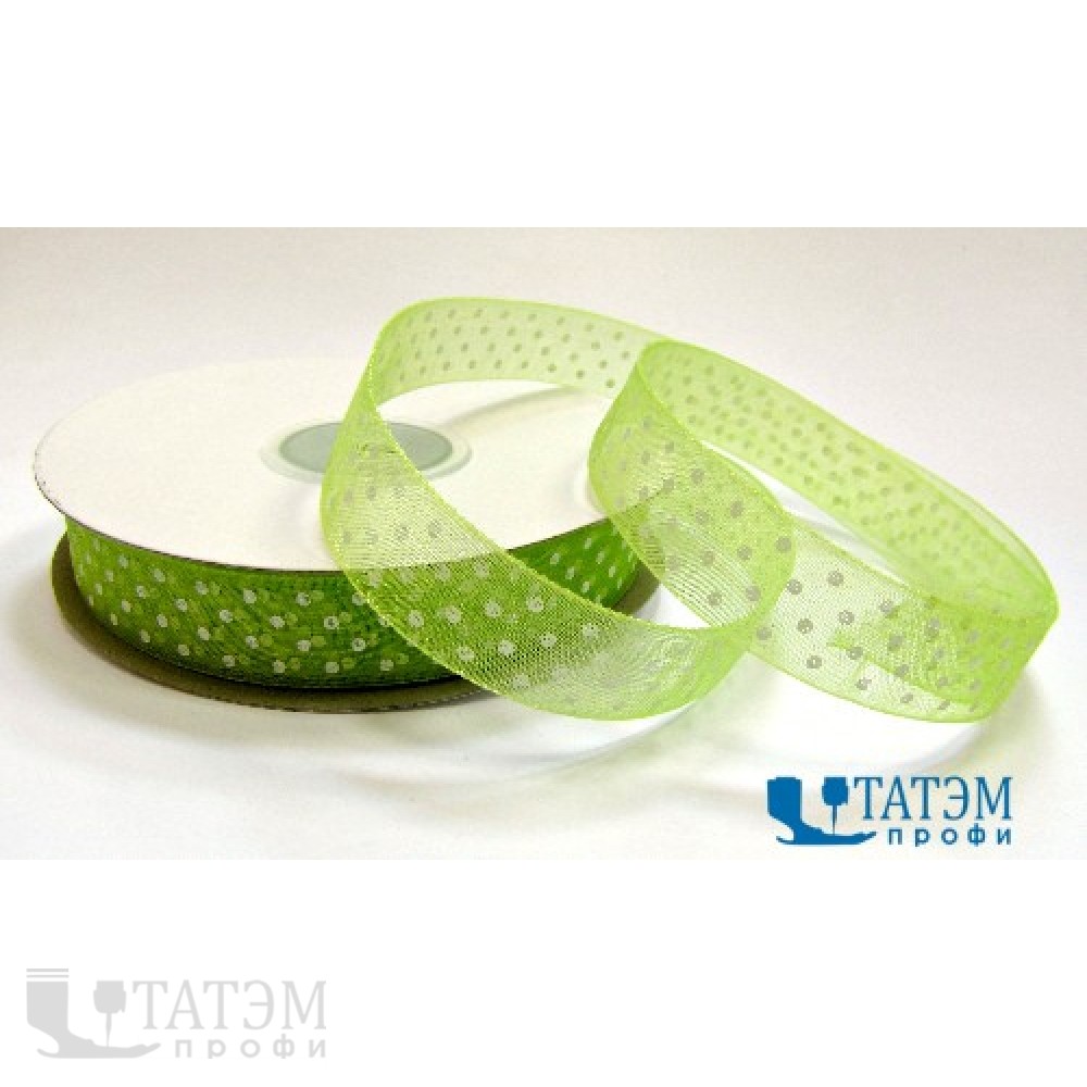 Лента декор. капроновая с рис."горох" 25 мм, белый, уп. 50 ярд