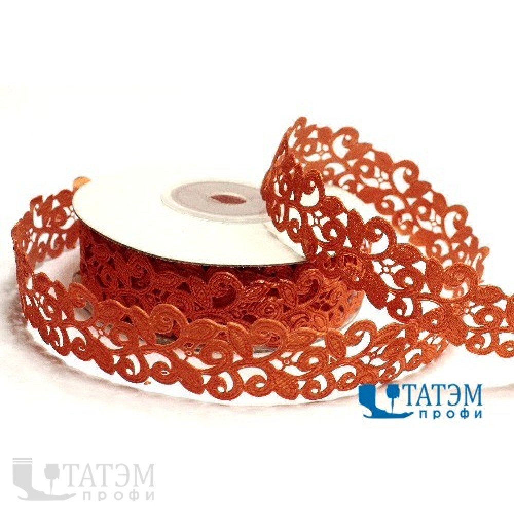 Лента декор. "цветочный узор" 20 мм, арт. СВ 178 оранжевый, уп. 10 ярд