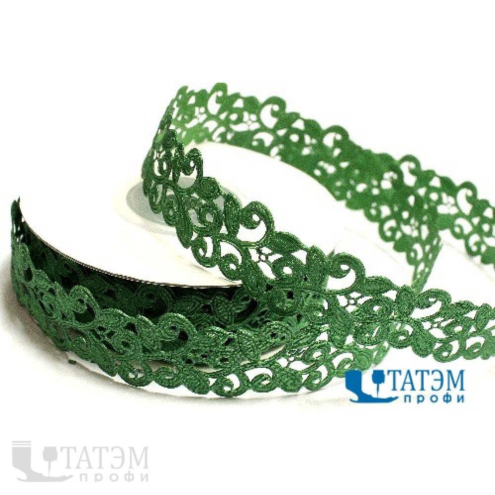 Лента декор. "цветочный узор" 20 мм, арт. СВ 178 зеленый, уп. 10 ярд