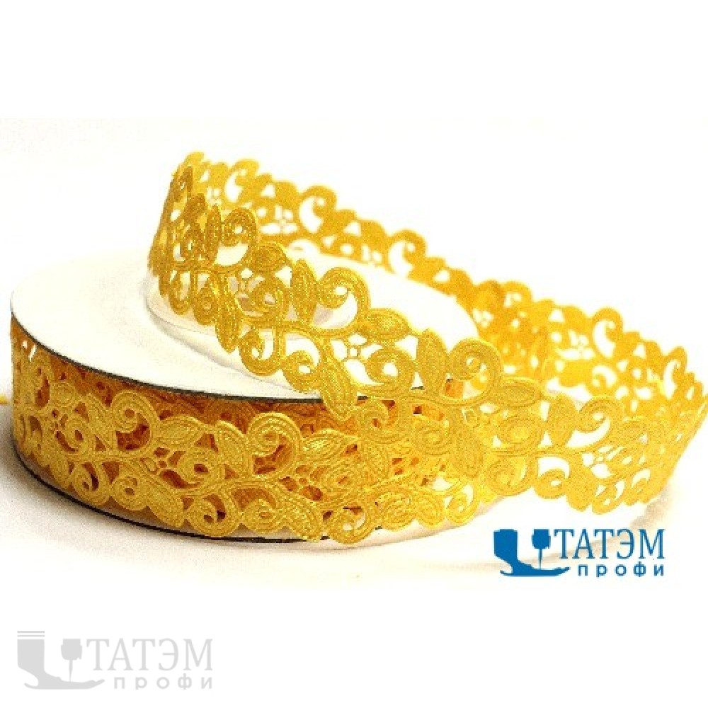 Лента декор. "цветочный узор" 20 мм, арт. LB118 золото, уп. 10 ярд