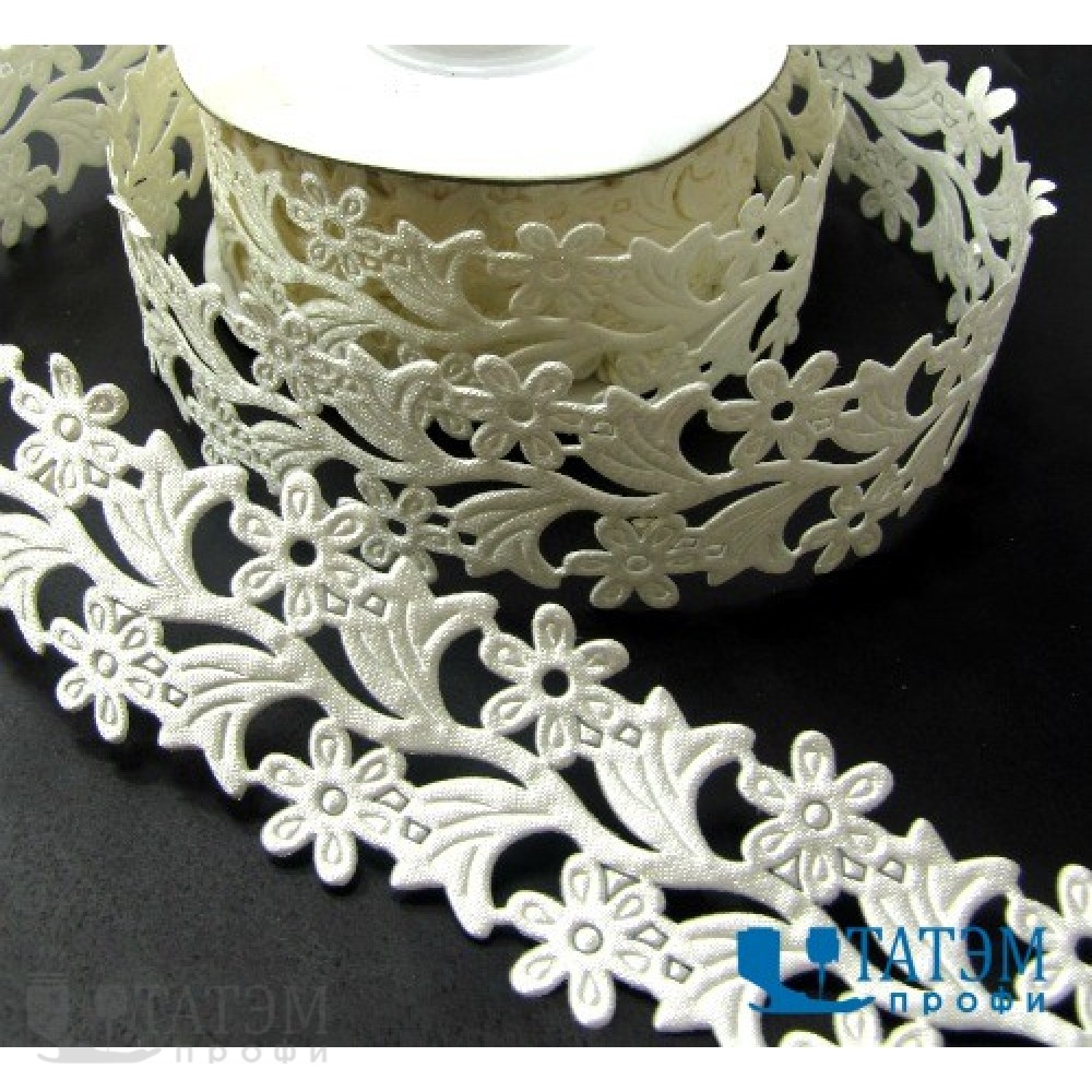 Лента декор. "цветочный узор" 30 мм, арт. СВ 202 айвори, уп. 10 ярд