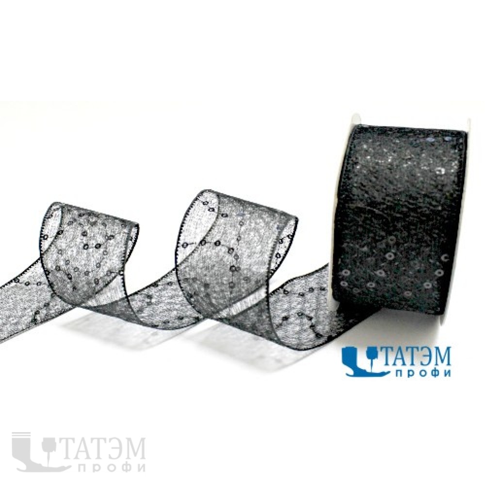 Лента декоративная "кружево с пайетками" арт. 160, 43 мм черный, уп. 10 ярд