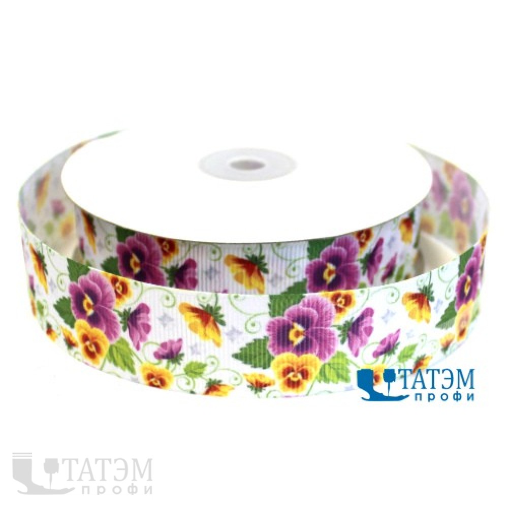 Лента декоративная репсовая 25 мм "Анютины глазки", уп. 25 ярд