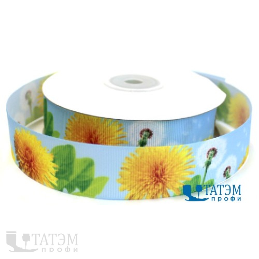Лента декоративная репсовая 25 мм "Одуванчики", уп. 25 ярд