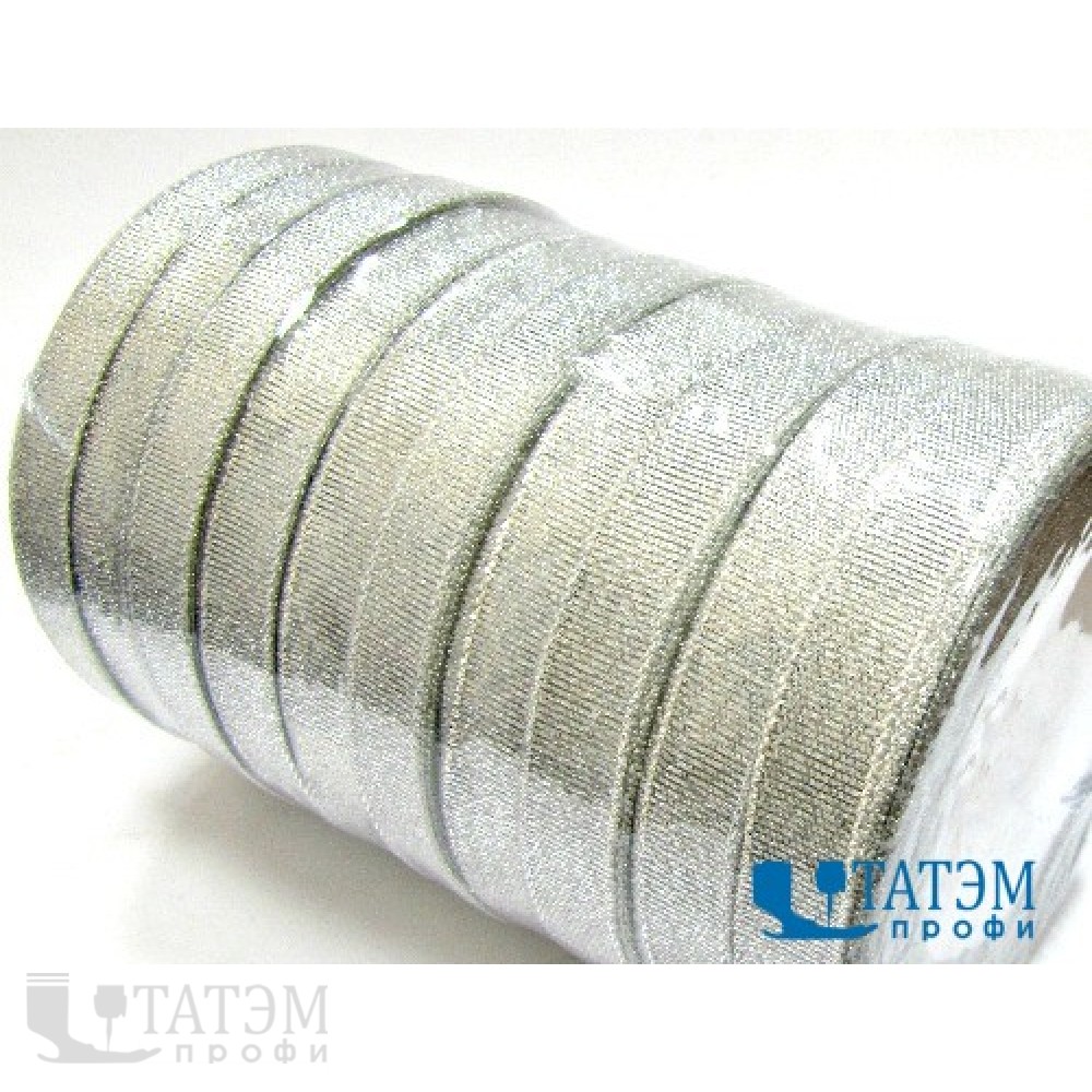 Лента декор.металлизированная (люрекс) 25 мм серебро, уп. 125 ярд: 5 рул по 25 ярд