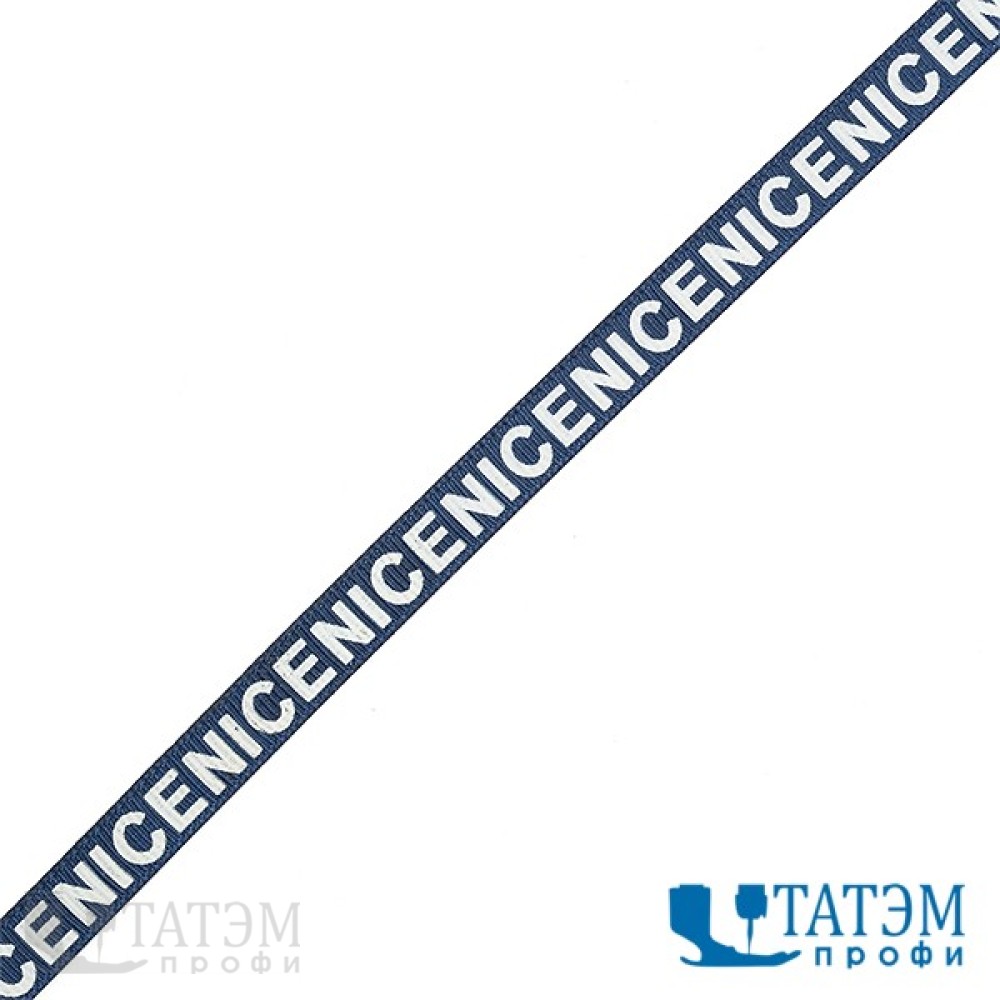 Лента репсовая с рисунком "Nice" 10 мм, синий/белый А, уп. 91,4 м