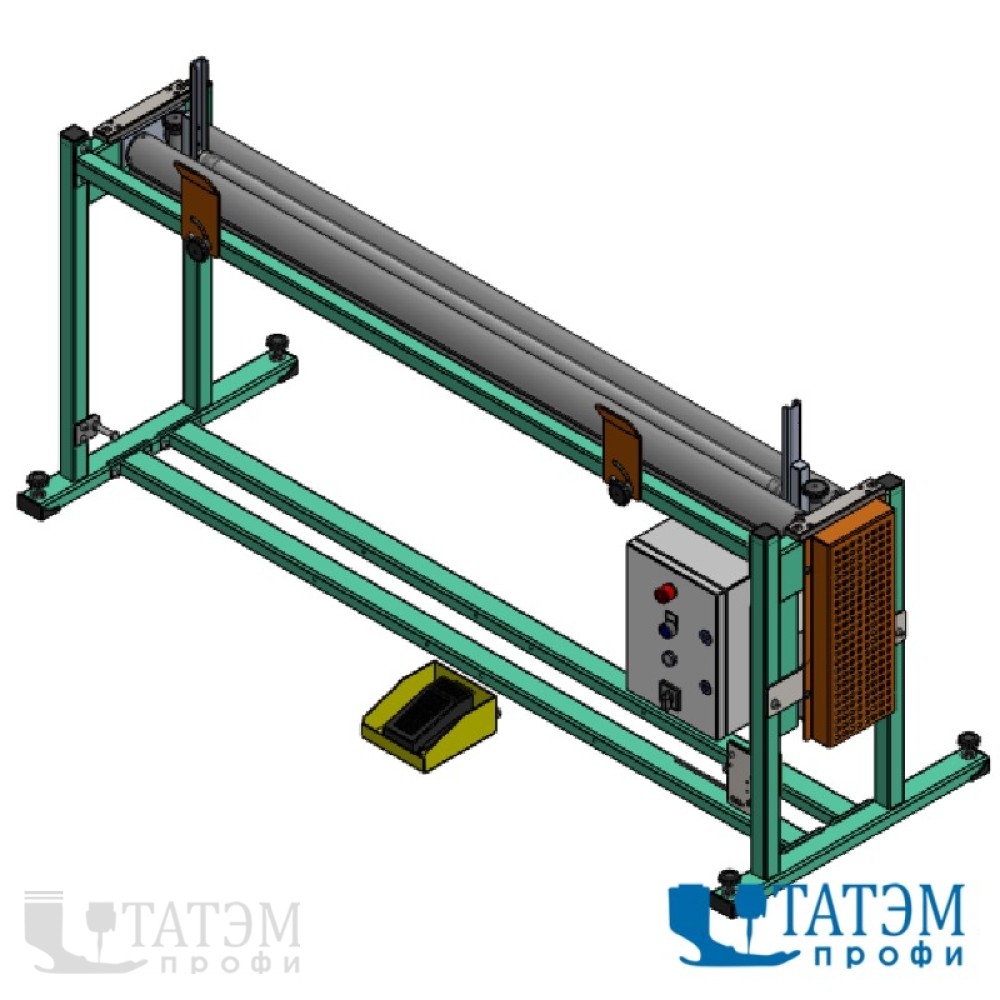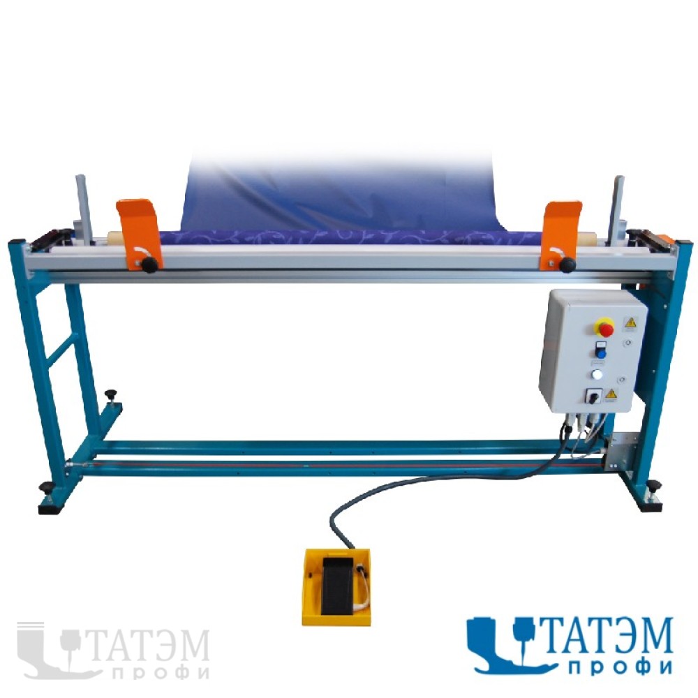 - Труба, на которую одета картоновая гильза фиксирует материал под собственным весом (ок 6 кг на ширину ткани 1600 мм). Возможно изготовление машины для ткани шириной до 1800 мм или 2000 мм;