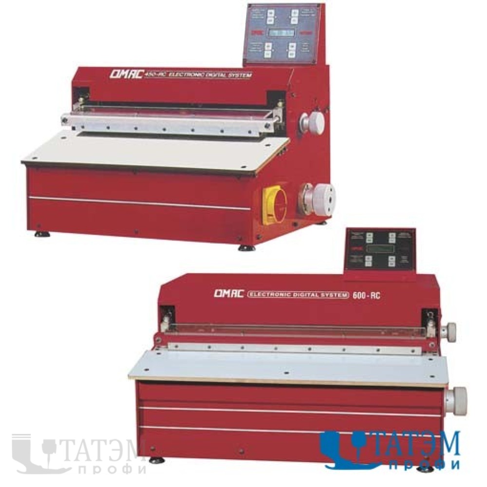 Машины моделей OMAC 450 и 600 предназначены для линейного подгиба кромок. Подгиб осуществляется автоматически за счет пневматического устройства, давление на рейку регулируемое, температура и время задается на специальном цифровом табло. Машина приводиться в действие от педали.