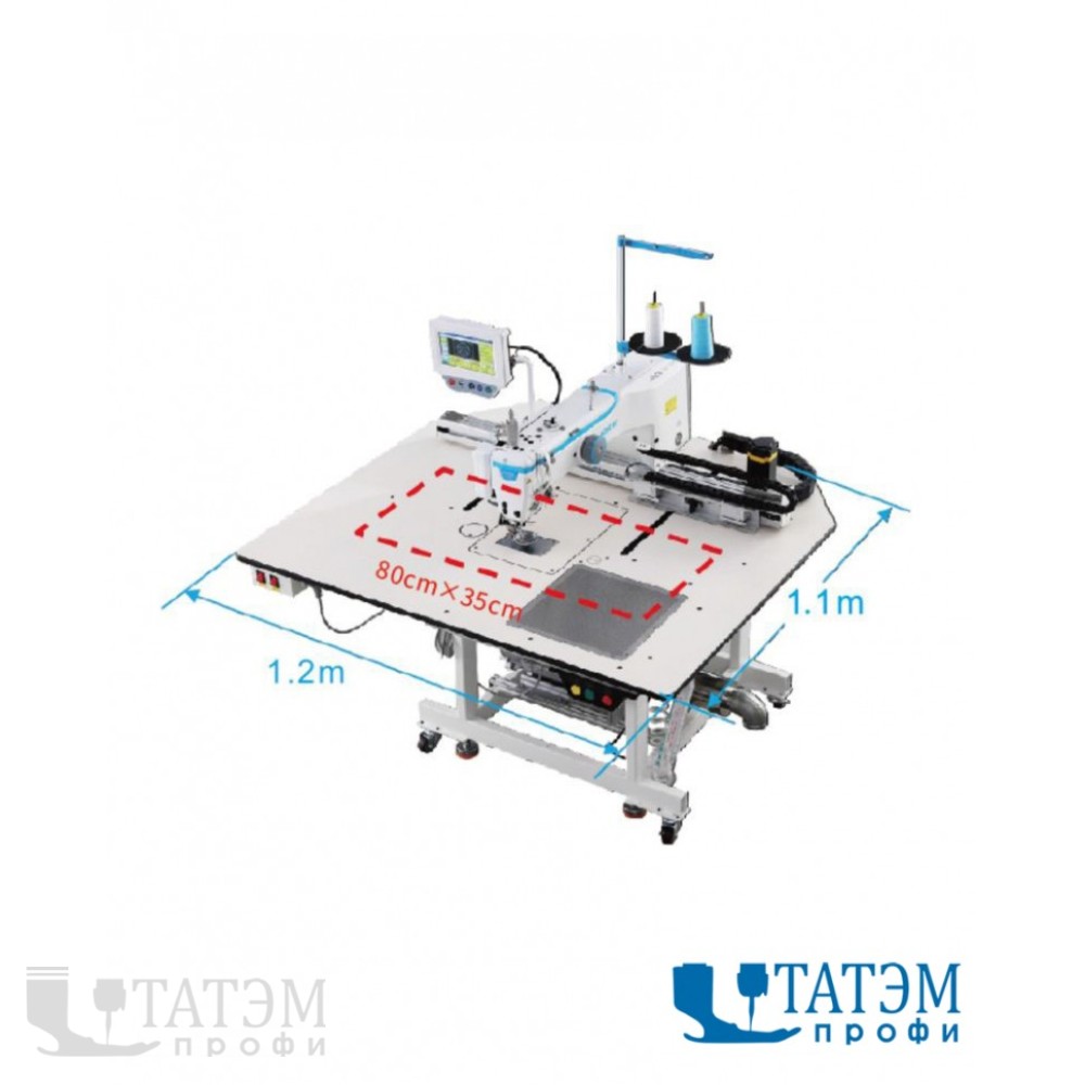стачивание деталей, настрачивание строчек, декоративных, функциональных элементов, текстильной застежки по программируемому контуру, обработка карманов, выполнение закрепок в поле шитья 800×350 мм2