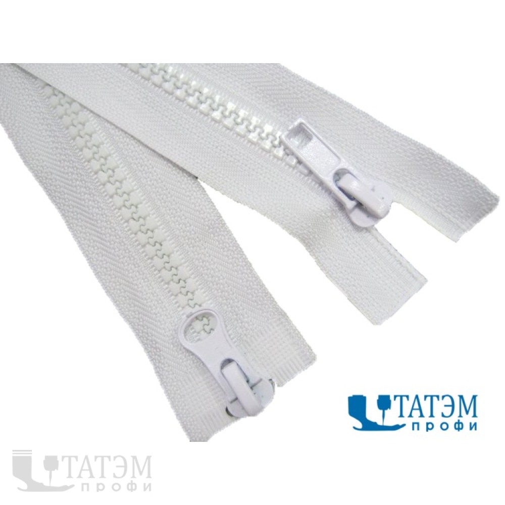 Молния-трактор с двумя бегунками применяется в пошиве верхней одежды, туристического снаряжения, сумок, чехлов. Ее особенность в возможности расстегивания с двух сторон – удобно при большой длине молнии. Зубчики выполнены из пластика, благодаря тщательной обработке они не имеют неровностей, поэтому бегунок легко скользит по молнии. Тесьма плотная и мягкая, хорошо пришивается, в носке принимает форму изделия, не образует заломов.