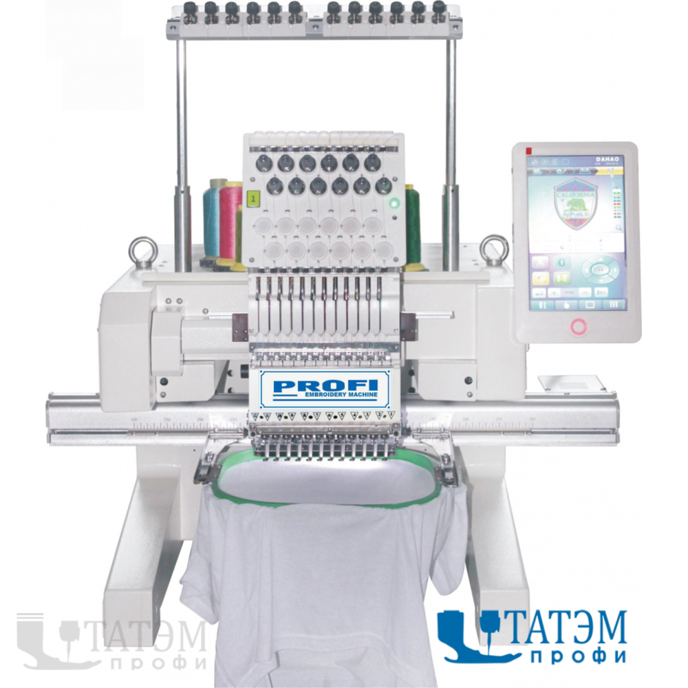 Вышивальная машина Profi 1201 (500 х 400 мм) (комплект) По сравнению с некоторыми конкурирующими моделями, PROFI 1201 не имеет выносного блока с электроникой. Вся электроника в PROFI 1201 размещена внутри машины. Увеличенное поле вышивки 50 на 40 см! Электроника идет самого последнего поколения от ведущей в мире фирмы DAHAO! Машина имеет новый сенсорный пульт 12 дюймов фирмы DAHAO! Скорость 1200 об.мин. Японские челноки! Рамная система!