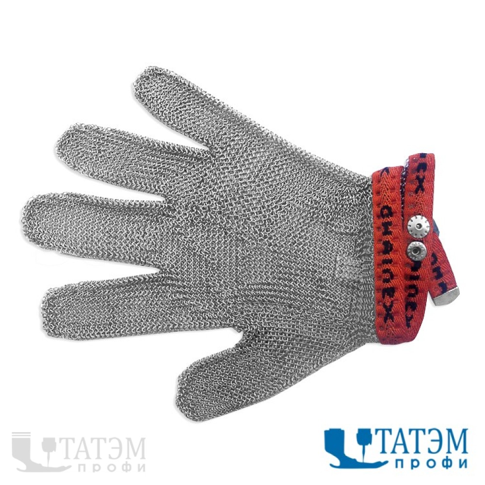 Стальные кольчужные перчатки служат для предохранения рук при режущих операциях. Выполнены в соответствии с европейским стандартом EN 1082-1. Имеют сертификаты GS (немецкий geprufte Sicherheit), CE (европейский сертификат соответствия), B (польский сертификат). Стальные перчатки типа CHAINEX SL гарантируют защиту рук от порезов и уколов при работе с ножом. Особенное применение находит в легкой промышленности на закройных операциях, где используются различные раскройные машины. Также при операциях обработки режущими инструментами мясной и рыбной продукции, на предприятиях общественного питания. Выполнены из нержавеющей стали. Перчатка является универсальной, подходит и на правую и на левую руку (достаточно вывернуть).