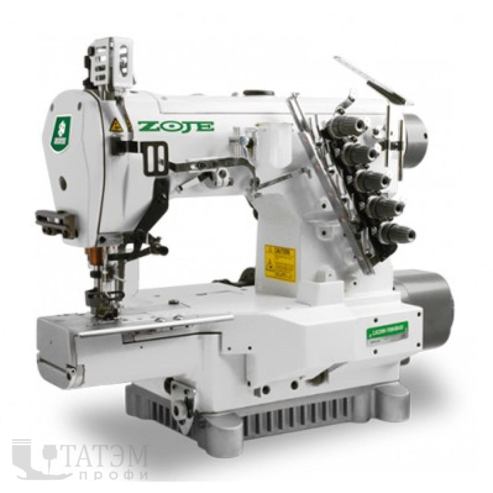 Трехигольная, пятиниточная плоскошовная машина цепного стежка с верхним раскладчиком и рукавной платформой, с прямым позиционирующим, энергосберегающим приводом и электронной регулировкой скорости. Машина оборудована задним пуллером. Предназначена для обработки легких и средних материалов, в таких изделиях как: спортивная одежда, футболки, нижнее белье, при пошиве эластичных, трикотажных тканей.