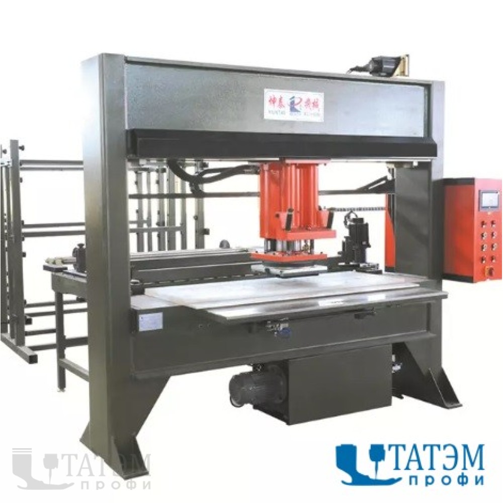 Пресс вырубной траверсный гидравлический с подвижной кареткой. Предназначен для вырубки кожи, пластика, ковролина, губчатых напольных покрытий и шпона. Применяется в производстве кожаных сумок, игрушек и головных уборов. Траверсный пресс с мобильной кареткой позволяет прорубать материал по всей ширине.