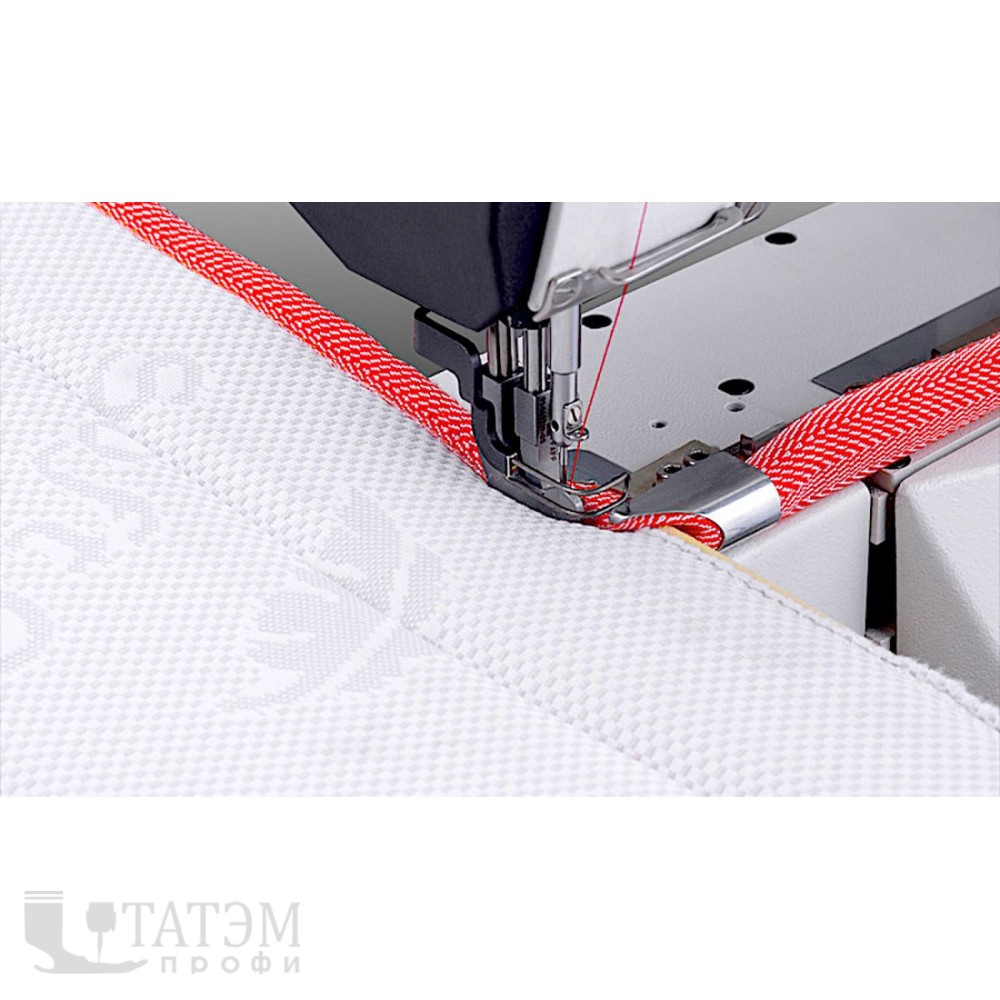 Специальная швейная головка двухниточного цепного стежка, оснащенная нижним, верхним и игольным транспортом, предназначена для использования в установках по окантовке матрасов. Полуцилиндрическая платформа и пневматический подъем лапки обеспечивают высокую производительность и удобство в работе.