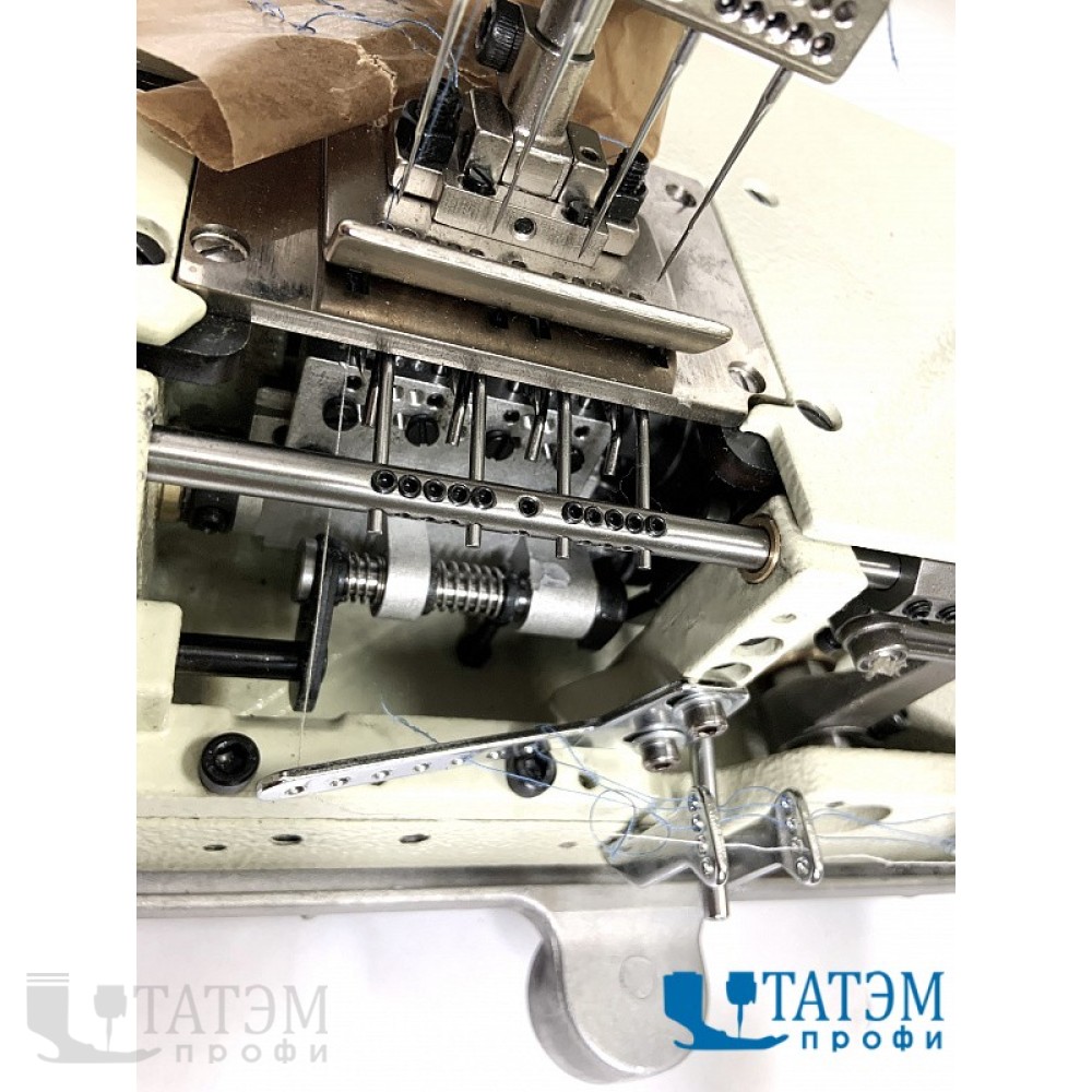 4-х игольная машина двухниточного цепного стежка с плоской платформой, с встроенным энергосберегающим двигателем, с зубчатым задним пулером и съемными петлителями, для обработки поясов спортивной одежды, манжет разной ширины и других трикотажных изделий, максимальное расстояние между крайними иглами 39,0 мм.
