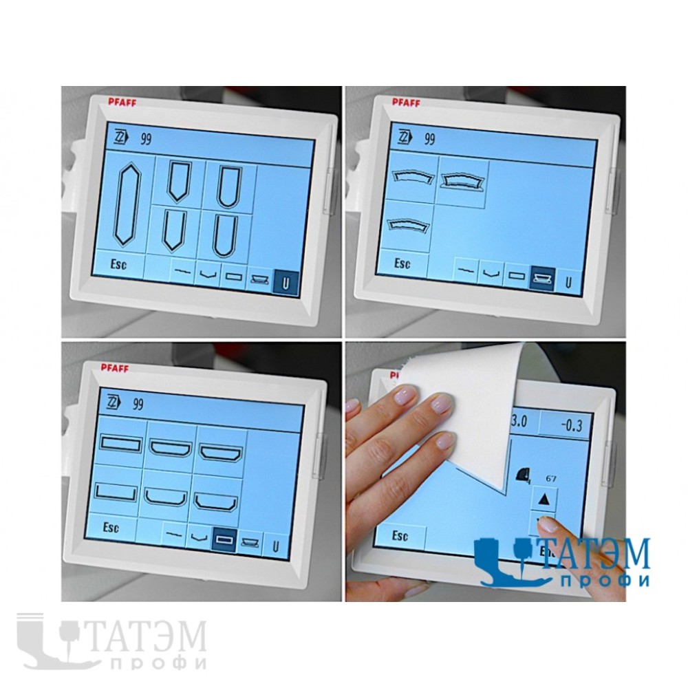 | Автоматические функции | Прокладывание отделочных строчек на воротниках, манжетах, шлицах рукавов сорочек, клапанах, погонах и других мелких деталей с контролем за краем детали с помощью фотодатчика, автоматической ограничительной электронной линейки и сенсорным экраном. 99 программ швов каждая с 25 последовательностями шва. |