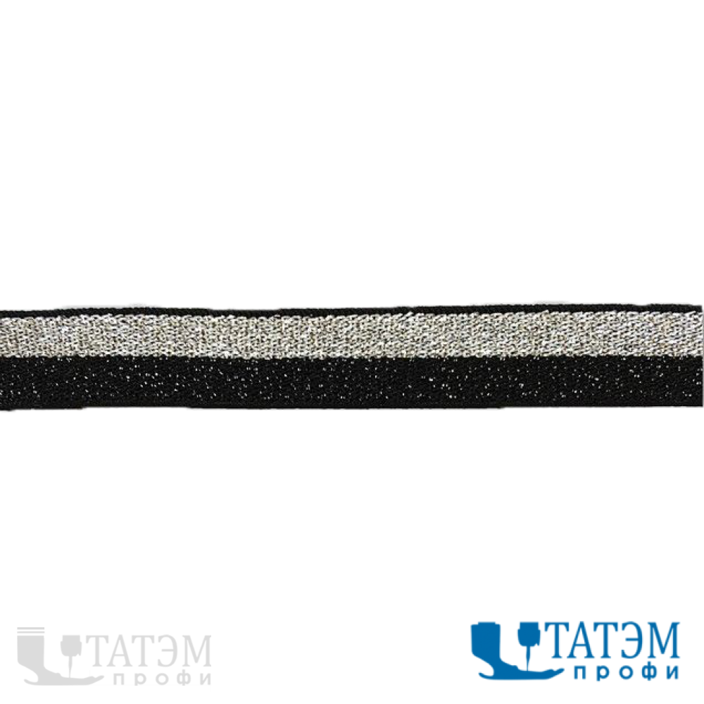 Лента эластичная 16 мм, серебро/черный, 10 м