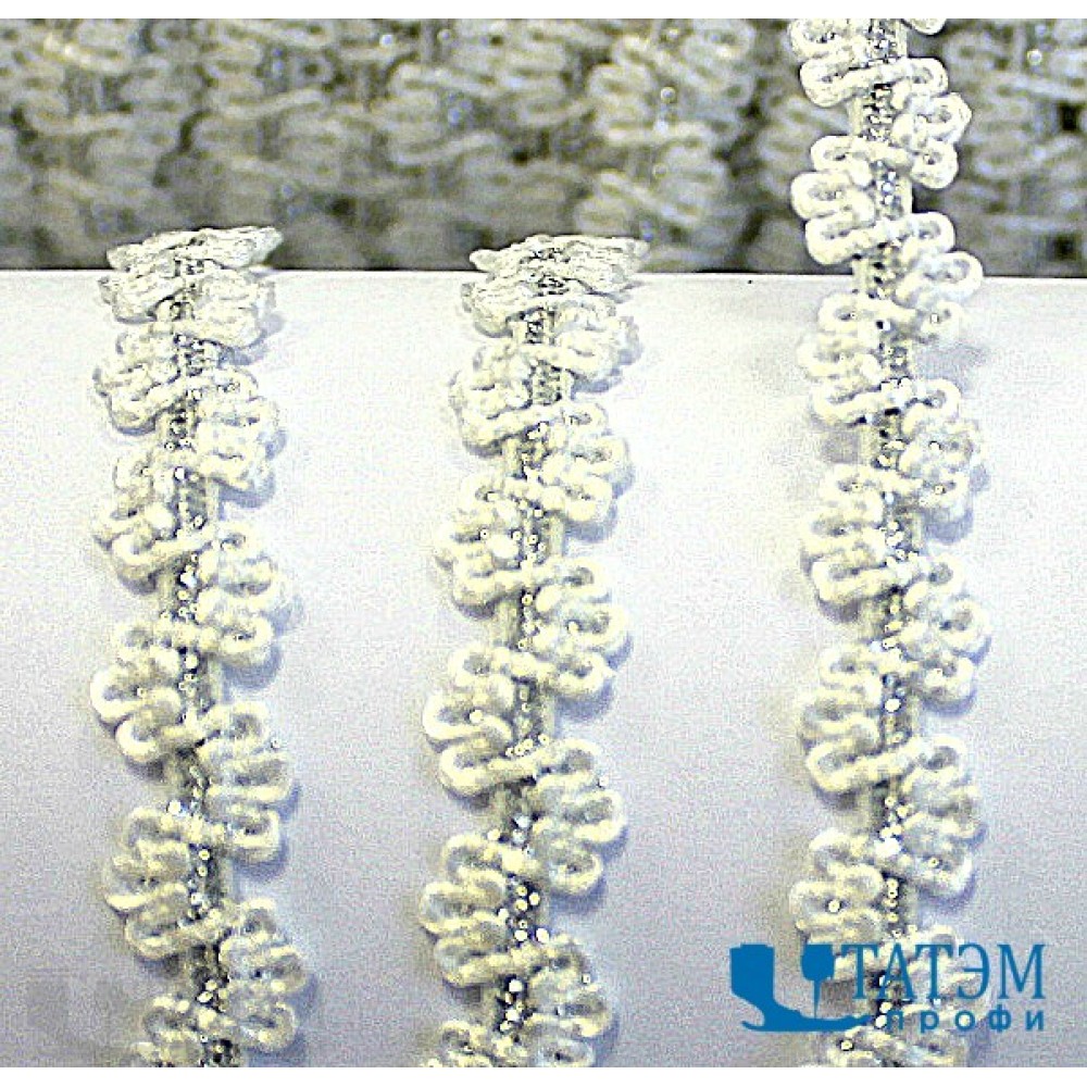 Резинка бельевая декоративная с люрексом "Зиг-заг" 8 мм белый/серебро, уп. 100 ярд