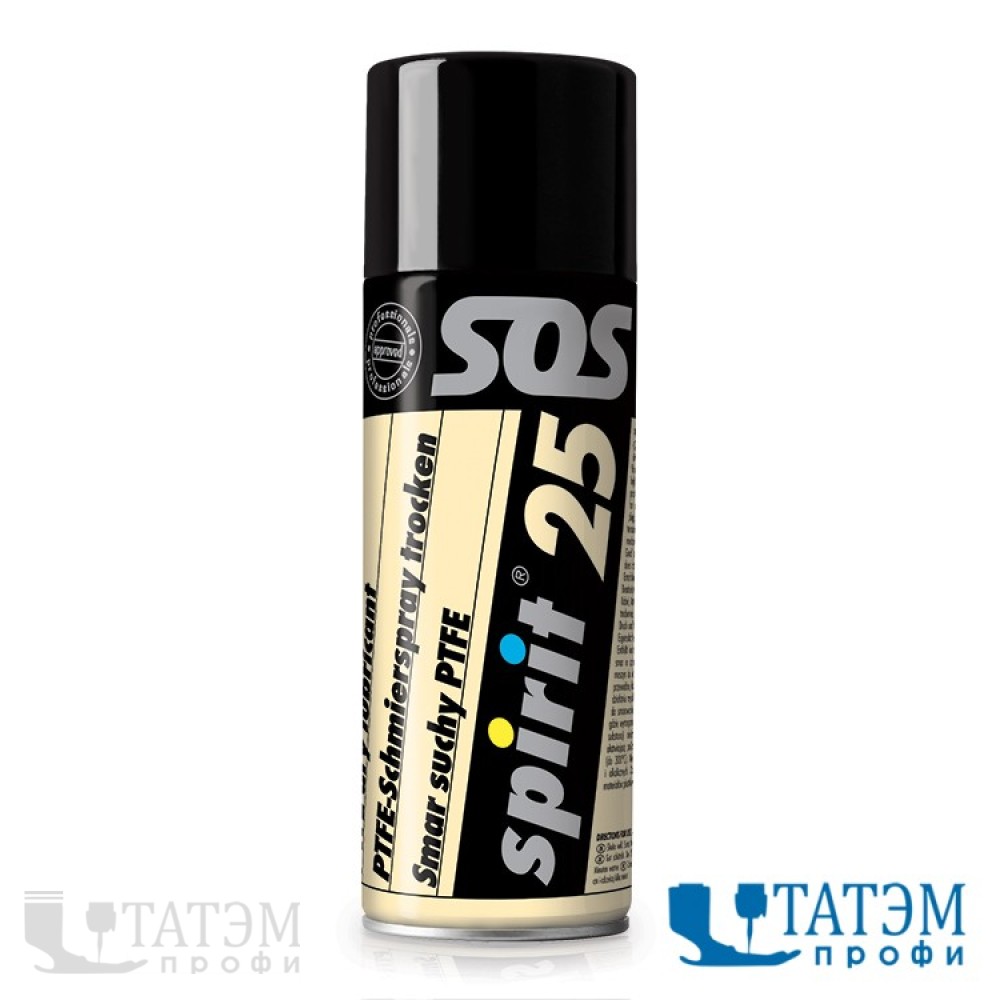 Spirit 25 - это сухая смазка спрей на основе PTFE - тефлоновое покрытие. Обеспечивает сухое пленочное покрытие, облегчающее скольжение движущихся деталей, снижающее трение и износ. Высокая термостойкость (до +300°C). Устойчива к агрессивным средам. Смазочное покрытие без маслянистого остатка. Не притягивает пыль.