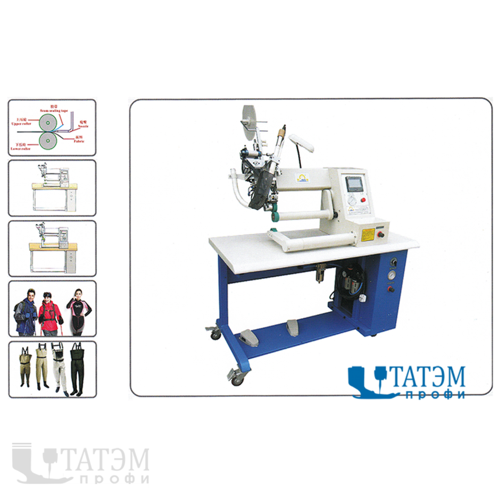 Станок подходит для широкого спектра применения, включая производство морских костюмов, непромокаемой одежды, защитной спецодежды и снаряжения для активного отдыха. Гарантия на устройство составляет 1 год, а послегарантийное обслуживание — 10 лет, что подчеркивает надежность и долговечность данного оборудования.