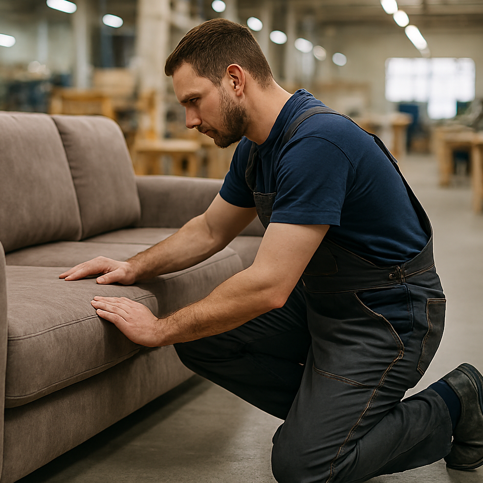 К ключевым устройствам для производства мягкой мебели относятся:Каркасные станки и пневматические прессы – позволяют собирать деревянные или металлические каркасы с высокой точностью, делая угловые соединения, усиленные элементы и конструкции с нестандартными формами.