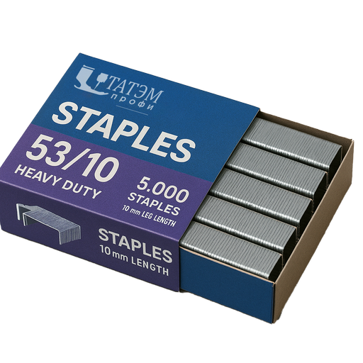 Самый распространённый тип — 53. Это тонкопроволочная скоба с широкой спинкой (примерно 11–12 мм). Её чаще всего используют для перетяжки мягкой мебели: крепят ткань, кожзам, подклад, ватин, а также фиксируют задние стенки из ДВП. Длина ножек обычно варьируется от 6 до 14 мм. Для тонкой ткани подойдут 6–8 мм, для плотной обивки с наполнителем — 10–12 мм.