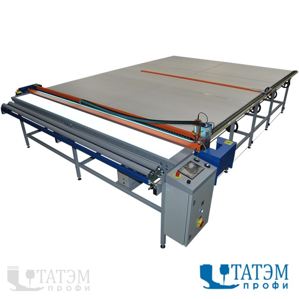 - Стол состоит из двух частей: отрезной секции и секции последующей обработки ткани. Существует возможность приобретения только отрезной секции и использования её с собственным столом (более экономный вариант).