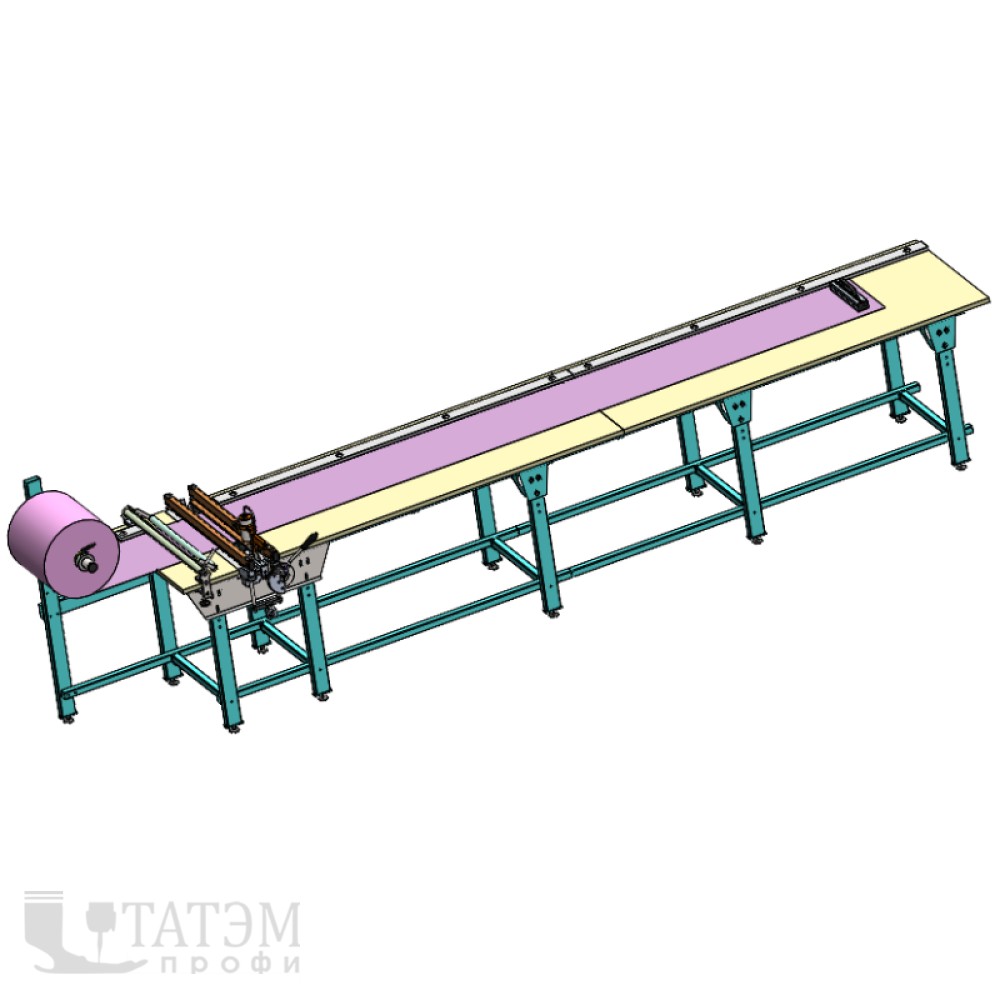 Конструкция стола выполнена из прочных стальных профилей с порошковым покрытием, что обеспечивает долговечность и защиту от коррозии. Ламинированная столешница из гладкой белой МДФ-плиты толщиной 25 мм с ПВХ-кромками не только эстетична, но и функциональна. Встроенный размотчик рулонов ткани и прижимной валик для ткани делают процесс резки еще более удобным, предотвращая соскальзывание материала.