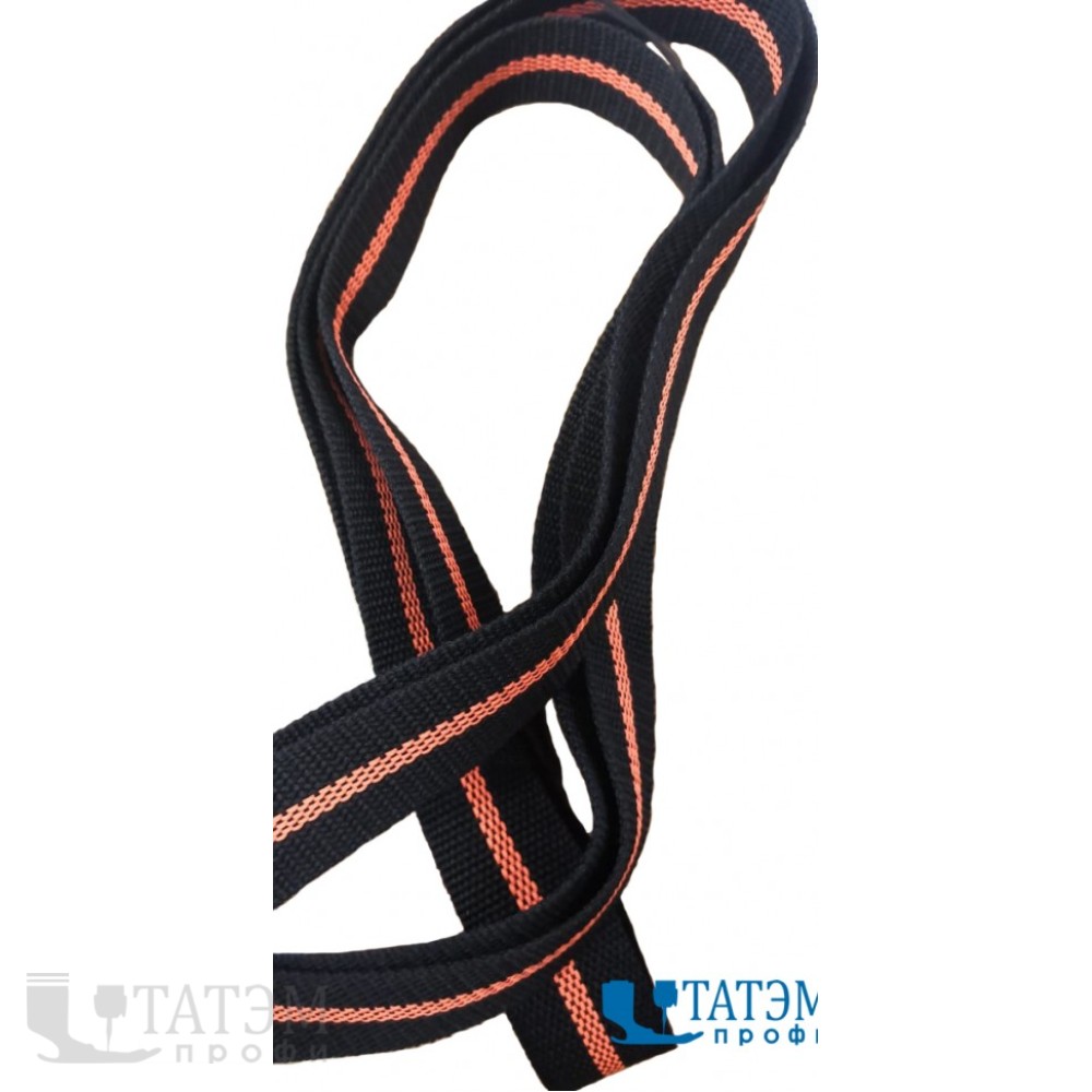 Лента ременная (стропа) 20 мм черная, с флюоресцент. оранж полосой, 100% полиэфир