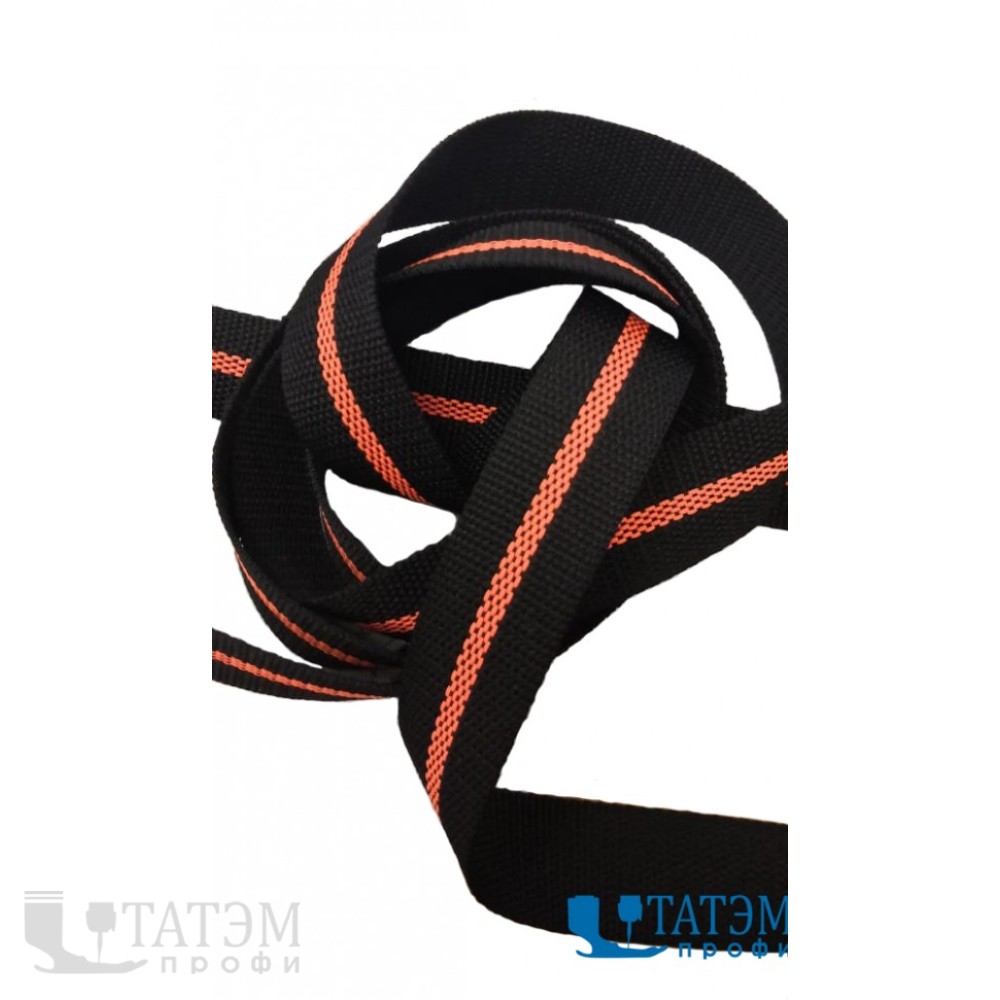 Лента ременная (стропа) 30 мм черная, с флюоресцент. оранж полосой, 100% полипропилен