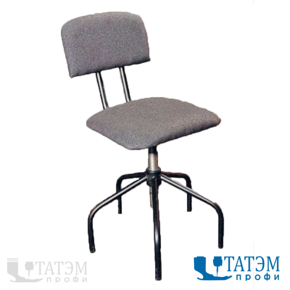 Стул рабочий регулируется по глубине посадки, имеет мягкое сиденье и спинку, обтянутые искусственной кожей или тканью.