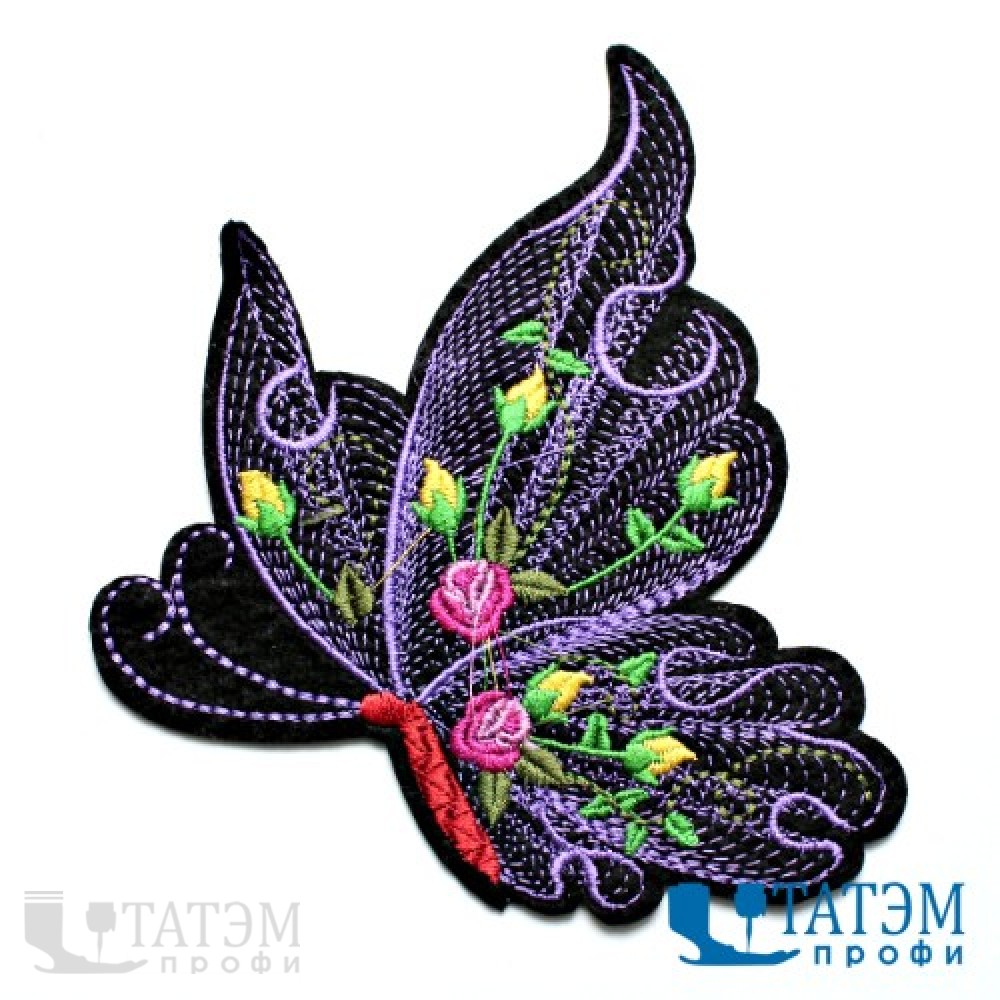 Термоаппликация "Бабочка с розами" 11,7 х 13,0 см арт. 4137 сиреневый, уп. 10 шт
