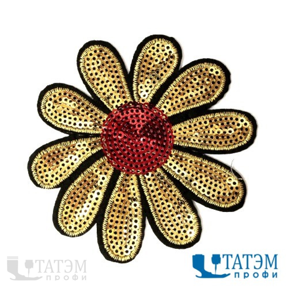 Термоаппликация с пайетками диам. 9,6 см "Ромашка", уп. 10 шт
