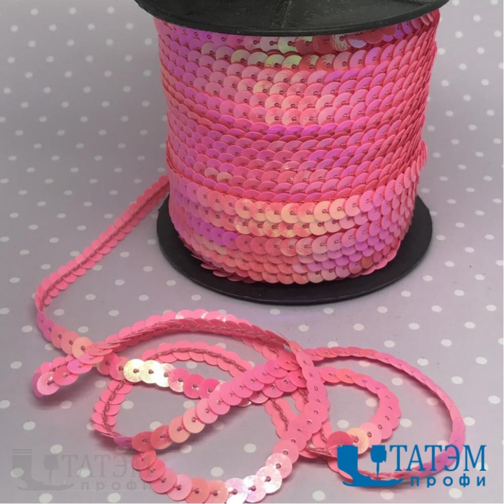 Тесьма с пайетками диам. 6 мм, В12 розовый, уп. 100 ярд.