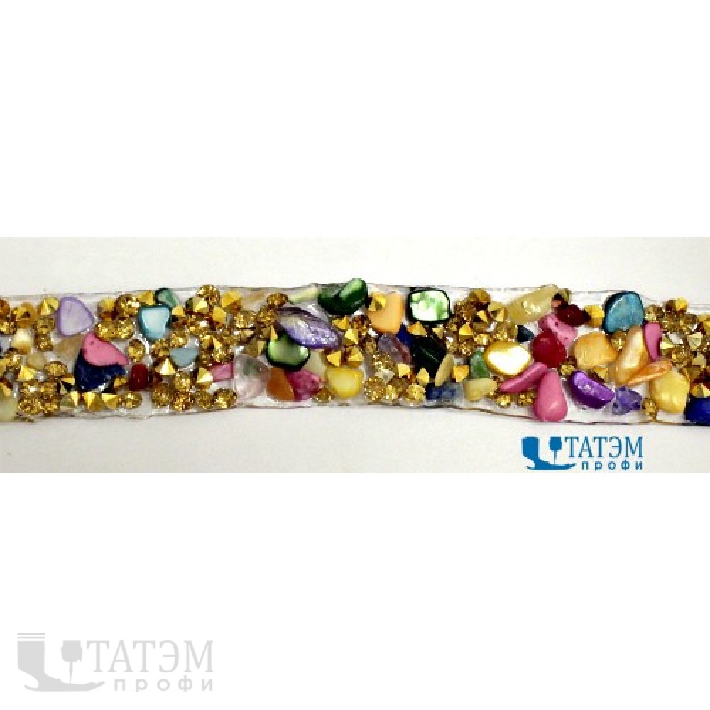 Тесьма термоклеевая декоративная 15 мм "Стразы с камешками", белый, уп. 5 ярд