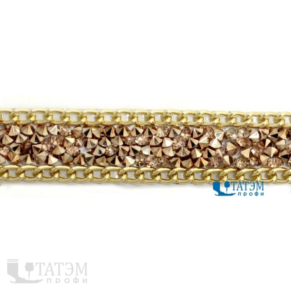 Тесьма термоклеевая декоративная 15 мм "Стразы с цепочками", розовый, уп. 5 ярд