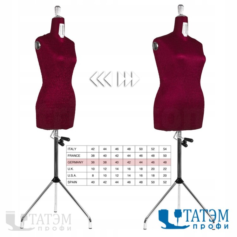 - регулировка высоты манекена до 170 см (высота подставки до 85 см, высота туловища до 85 см)